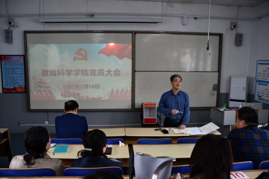 3月18日,性爱网 在4C221教室召开全体党员大会,组织党员无记名投票选举参加性爱网 第五次党员代表大会的代表,教师与学生共计88名党员参加,党总支书记李宗念主持大会。