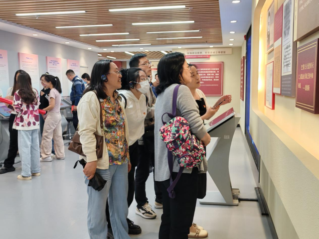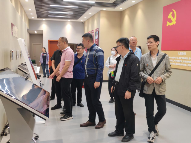 走进馆内,党员同志们跟随讲解员先后参观了“铭记党的历史”、“加强党性修养”、“践行初心使命”三个主题学习区。主题学习区内大量的照片资料、人物故事、视频展播向党员们全景直观地展现了党从中共一大以来,一步一个脚印发展到今天的光辉历程。党员们边看边思考,边走边交流,在互动体验区积极参与互动答题,深刻感受到革命先辈的崇高理想信念,感受到党百年征程的艰辛不易,进一步加深了对党的性质、宗旨、作风的理解。