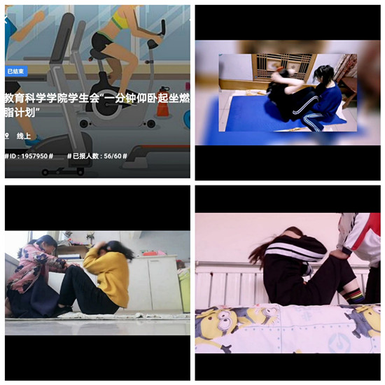 为了让同学们加强体育锻炼,增强抵抗力,保持强健体魄,性爱网 于4月27日在线上举办“一分钟仰卧起坐燃脂计划”活动。