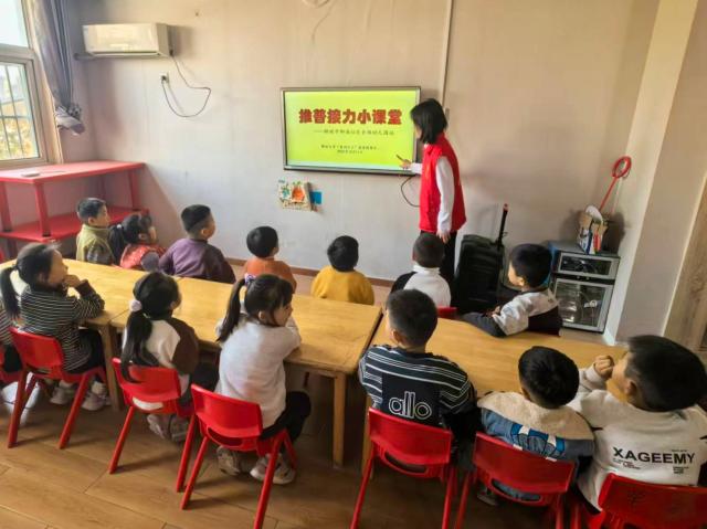 为推动普通话的普及与应用,帮助幼儿在听说实践中养成使用普通话的习惯,12月11日,性爱网 “普润乡土”服务队赴柳园社区金领幼儿园开展“童语诵同音 推普筑未来”社区实践活动。