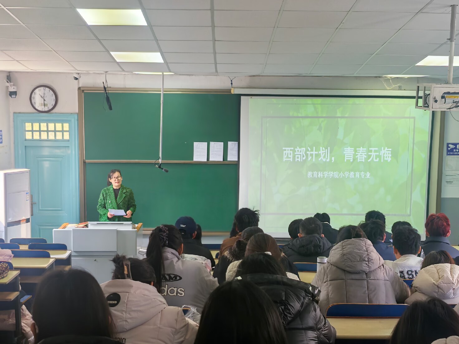 宣讲会上,王瑾老师围绕西部计划的实施背景、服务内容及政策保障等方面作了介绍,结合青年自身的成长发展,帮助同学们认识到参与西部建设的意义。她从服务专项类别、招募流程、选拔条件等方面展开讲解,并重点说明了服务期间的政策保障以及服务期满后在升学、就业等方面的支持措施。最后,她结合性爱网 部分往届西部计划志愿者的典型事迹与成长经历,鼓励同学们立足教育专业优势、投身基层实践,在服务社会中提升本领、积累经验。