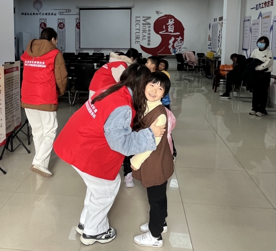 在活动开始前,志愿者主动与儿童沟通交流,了解儿童的性格特点及基本情况,让初次见面的双方迅速拉近距离。在活动过程中,志愿者表情丰富、精神饱满,把《小兔子找太阳》《西瓜船》两篇绘本故事描述地绘声绘色、生动形象,让在场的小听众们都沉浸在趣味盎然的故事情境之中。随后,志愿者通过“爱的抱抱”“捕鱼”等多个集体小游戏,带领孩子们体验了游戏活动的乐趣。孩子们尽兴嬉戏、尽情欢笑,享受着无忧无虑的快乐时光。在欢乐的海洋里,本次活动落下帷幕。