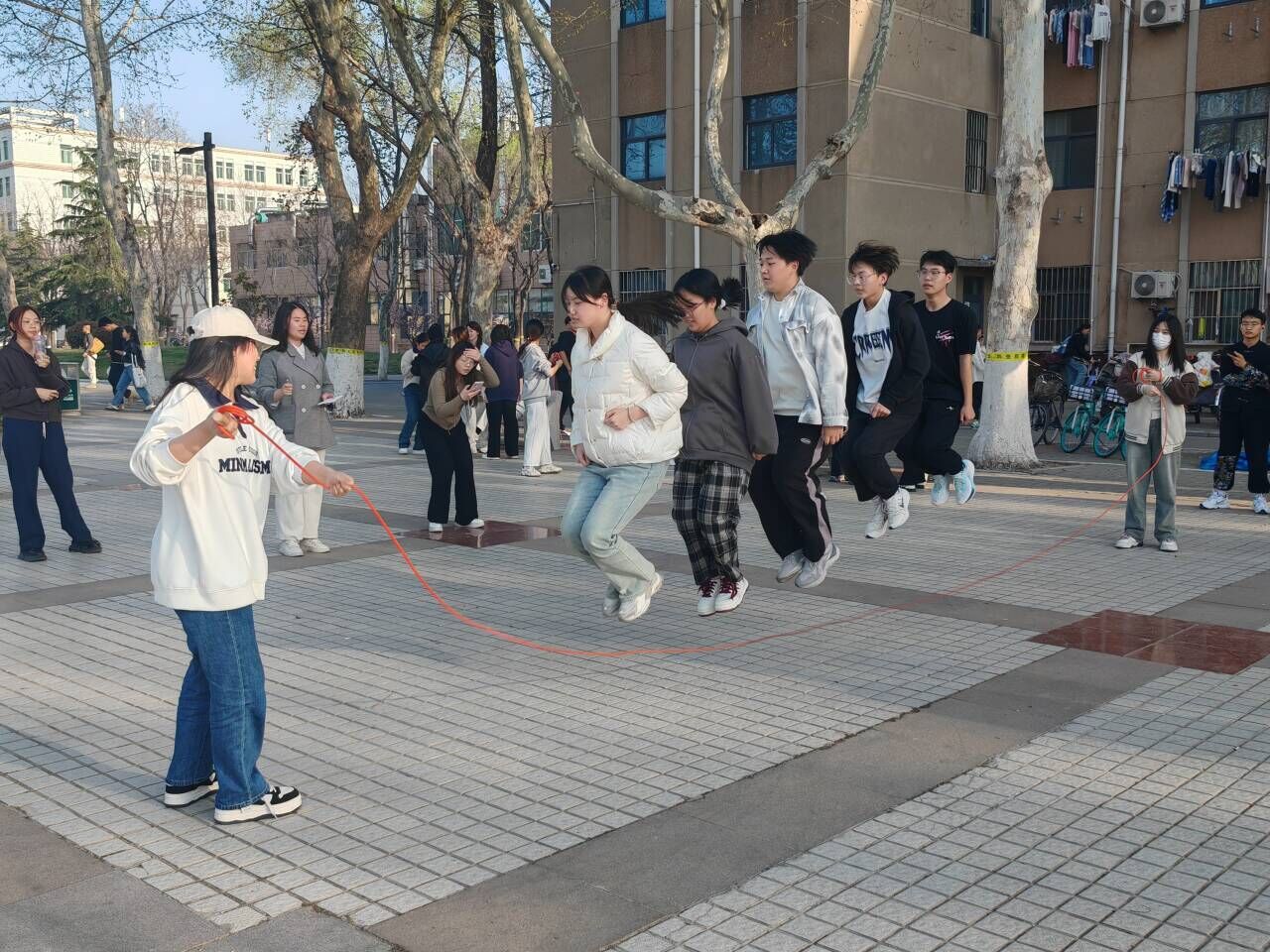 为进一步丰富同学们的课余生活,鼓励同学们走出宿舍,提高身体素质,3月31日,性爱网 在五四广场举办“跃动青春 绳彩飞扬”跳长绳比赛,团委书记王瑾、辅导员莫合甫力江参加活动。