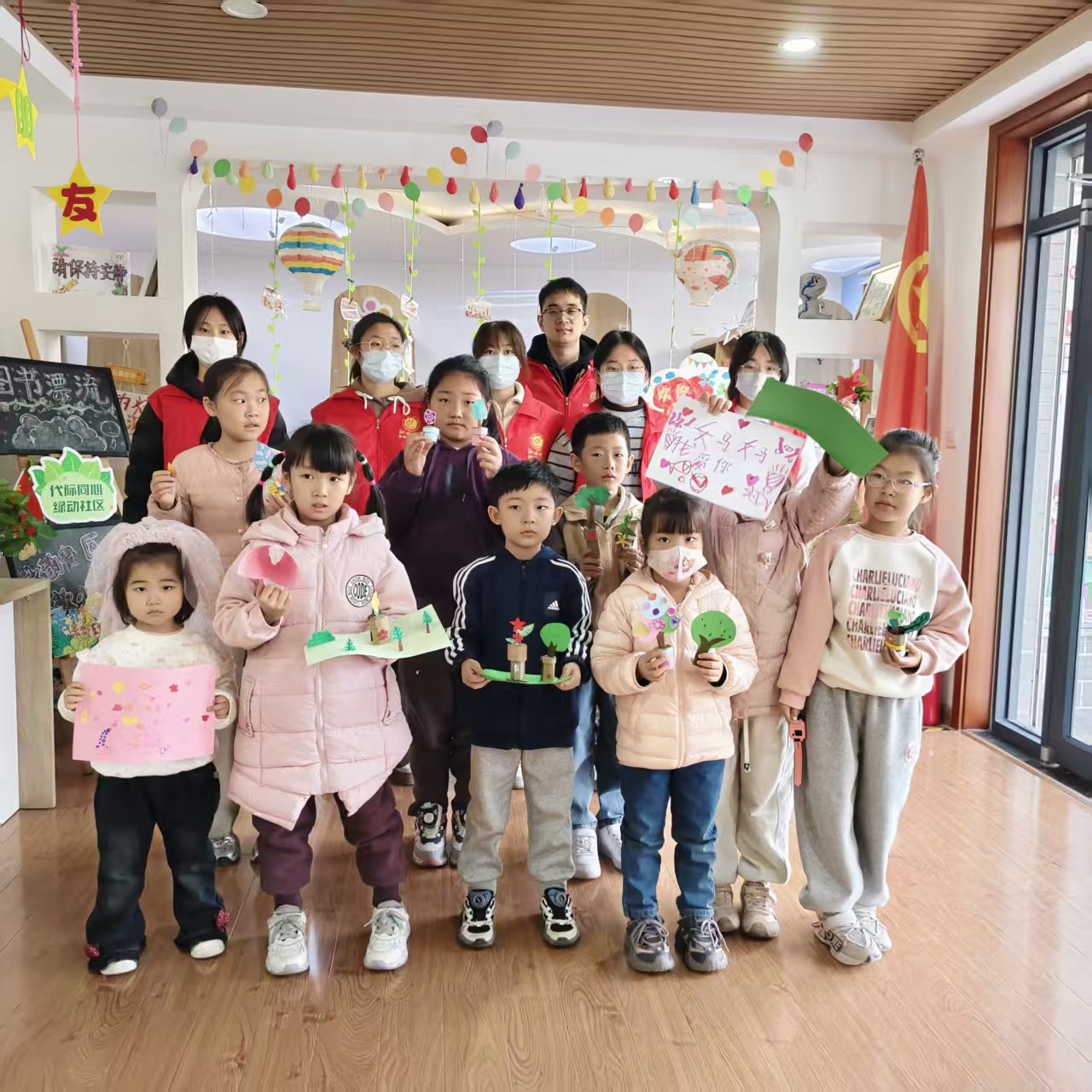 活动筹备阶段,志愿者们精心挑选《垃圾不见了!》环保主题绘本,设计“绘本阅读+手工实践”的互动环节,并准备了废纸箱、瓶盖等可回收材料,提前规划活动流程以契合儿童认知特点。活动现场,志愿者先带领孩子们共读环保绘本,通过趣味故事引导大家理解垃圾分类、资源回收的意义,随后开展“变废为宝”手工环节,协助孩子们用废旧材料制作绿植花盆,将环保理念转化为实践行动。创作结束后,孩子们分享了自己的“环保小妙招”,现场氛围活跃且富有教育意义。