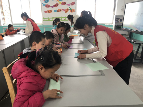凝集每一份爱,点燃每一颗心。经过精心的准备后,志愿者们怀着无比激动的心情来到特殊教育学校。一场欢乐的聚会,必不可少的当然是欢声笑语,志愿者们给孩子们表演了精彩的舞蹈节目,曼妙的舞姿将他们的心连接起来,获得了孩子们的掌声和赞美。暖场舞蹈结束后,志愿者和孩子们一起动手折纸,他们的学习能力很强,志愿者对他们小小的赞美他们都会很开心。孩子们清澈的眼神、认真的表情、善良的内心、简单的快乐,带给志愿者们无限的感动。活动最后,志愿者们教给孩子们一些生活常识,孩子们也很配合,积极地回答志愿者提出来的问题,活动在大家的欢声笑语中落下帷幕。