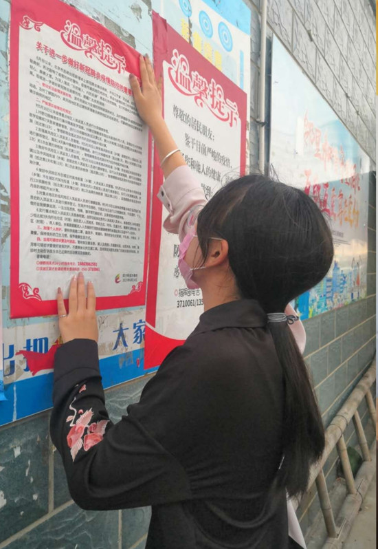 活动前期,交谊舞部的全体成员制定好活动规则并明确具体注意事项,同时进行任务分配,以保证活动有效地进行,同学们自行准备好有关防疫的宣传材料和相关问题,准备好志愿服务所需的物品并自觉做好防护措施以保证自身安全。活动期间,同学们的实践形式多样,有的同学自制有关防疫知识的手抄报和海报,张贴在社区的公共栏进行宣传;有的同学对归来防疫英雄进行访谈,倾听他们的英雄事迹并向他们致敬;有的同学自愿参加社区防疫活动,主动帮助小区进出人员进行体温测量等,减轻社区工作人员的负担;有的同学在校园周边道路维护出入校的同学们的秩序,保护学生们的安全。
