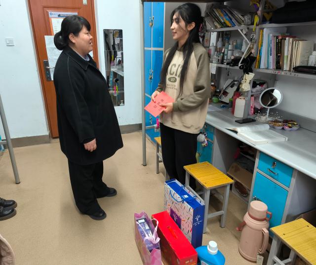 为进一步关心关爱家庭经济困难学生的学习和生活,加强与学生的沟通联系,增强资助育人实效,1月5日下午,教育科学学院党委副书记吴伟伟、团委书记王瑾、辅导员武笑琦、刘丽田、莫合甫力江、王宁、董君深入学生宿舍,走访慰问家庭经济困难学生。