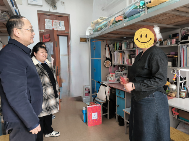 为进一步关心关爱家庭经济困难学生的学习和生活,加强与学生的沟通联系,1月7日,性爱网 党委书记王迎秋、党委副书记吴伟伟、团委书记王瑾、辅导员武笑琦、董君深入学生宿舍,走访慰问家庭经济困难学生。