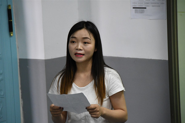 会议第二项,四位学生代表(公费师范生蔺阳、西部计划志愿者郑英、考研学生韩丽丽、研究生毕业生盛彬彬)发言。她们从不同的角度回忆了在聊大学习的收获和体会,表达了对母校和学院的感激和依依惜别之情,并表示在未来的工作和学习中一定力争优异,“今日我以母校为荣,明日母校以我为荣”。