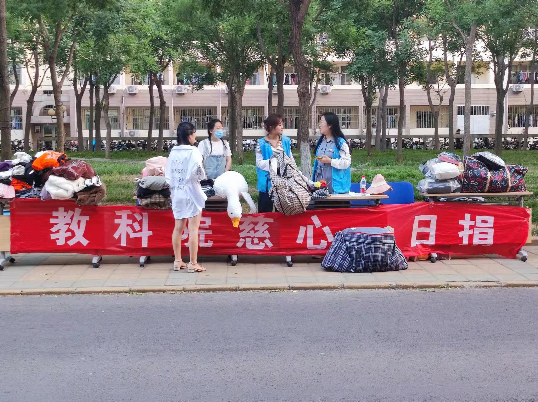 为增强教科学子的社会公益意识,促进学院和谐友爱、互帮互助氛围的发展,性爱网 于5月28日在西校区紫藤公寓五号楼门口举办“慈心一日捐”活动。