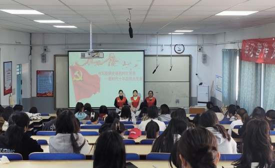 为深入学习宣传贯彻党的二十大精神,教育引导广大青年听党话、跟党走,激励同学们在实现中华民族伟大复兴的中国梦的道路上赓续前行,3月5日,性爱网 邀请马克思主义学院青年学生宣讲团成员在4#C221开展以“新时代十年的伟大变革”为主题的宣讲活动,并通过易班平台进行直播。