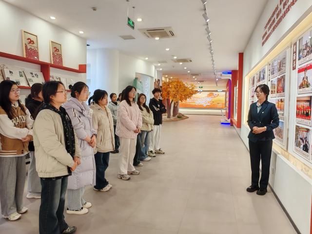 活动伊始,讲解员引领同学们有序进入西部计划教育展馆。展馆内共分为“党旗召唤,青年航向”、“山河见证,青春足迹”、”“初心如磐,奋斗筑梦”、“立德树人,托举理想”、“绚丽绽放,书写荣光”五个单元展区,全面展现了西部计划的发展历程和显著成效。在参观过程中,同学们共同观看专题视频,领略了西部地区的壮美风光,真切感受了志愿者们扎根基层、奉献青春的动人故事。同时,通过讲解员的讲解,同学们深入了解了“特别能吃苦、特别能战斗、特别能忍耐、特别能团结、特别能奉献”的老西藏精神,深刻感悟了孔繁森同志“赤诚、担当、大爱、无我”的崇高精神。讲解结束后,现场响起了热烈的掌声,同学们被志愿者们无私奉献的精神所感动,也进一步加深了对西部计划政策的理解,坚定了投身基层、服务西部的信念。