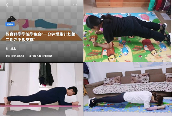 为丰富同学们的课余生活,增强同学们自身免疫力,激励同学们积极运动,性爱网 于5月11日在线上举办“一分钟燃脂计划第二期之平板支撑”活动。
