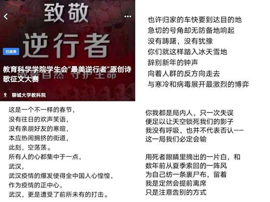 为丰富教科学子的文化生活,推进校园文化与精神文明建设,性爱网 于10月3日至10月5日在线上举办“最美逆行者”原创诗歌征文大赛。