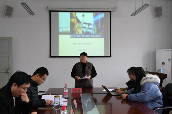 挑战杯得到了同学们的积极响应,申报作品涵盖人文科学类社会实践调查报告、自然科学类调查研究等方面。参赛选手依次上场,通过现场答辩的方式进行作品介绍,他们的叙述条理清晰、逻辑严密,全面展示课题的完整内容,现场评委结合专业知识,以作品的研究背景、实施方案、内容完成度为切入点,从作品细节入手进行点评,在肯定同学们创新能力的同时让选手们了解到自身不足,引导和激励学生不断实事求是、刻苦钻研、勇于创新,希望同学们继续打磨作品、修正细节,同学们认真倾听并记录笔记。在此次选拔赛中周敏同学凭借其作品《疫情网络谣言的心理影响性及其教育干预》获得比赛第一名,推举到“挑战杯”校级比赛。