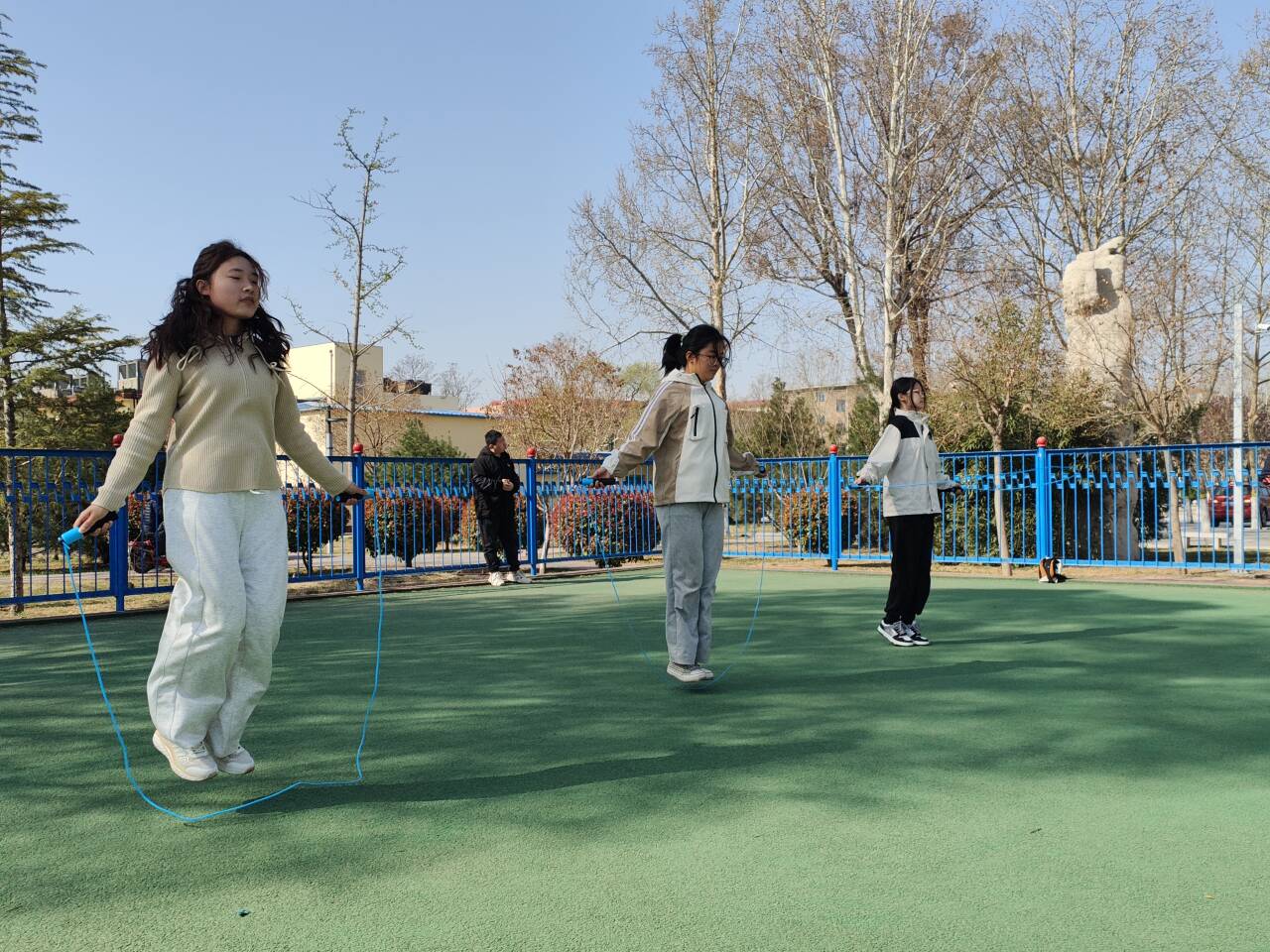 本次活动趣味十足,热闹非凡,由单人跳和双人跳两个环节构成。活动伊始,负责人向参赛选手们介绍本次比赛规则,随着哨声响起,比赛正式开始。在单人跳环节中,一分钟内,选手们手中的跳绳如灵蛇般翻飞,充分展现了青年学子朝气蓬勃、昂扬向上的精神风貌。在双人跳环节,参赛者们两两组队,配合默契无间,他们在操场上轻盈地跳跃,双臂挥动间,手中的跳绳在空中划出一道道优美的弧线,场下的观众们都为他们的精彩表现欢呼喝彩,现场洋溢着欢声笑语。经过激烈的角逐,最终王浩、杨凯馨、宋安慧分别荣获单人跳的一、二、三等奖,居尔艾提·图尔荪和王浩组成的团队荣获双人跳一等奖。