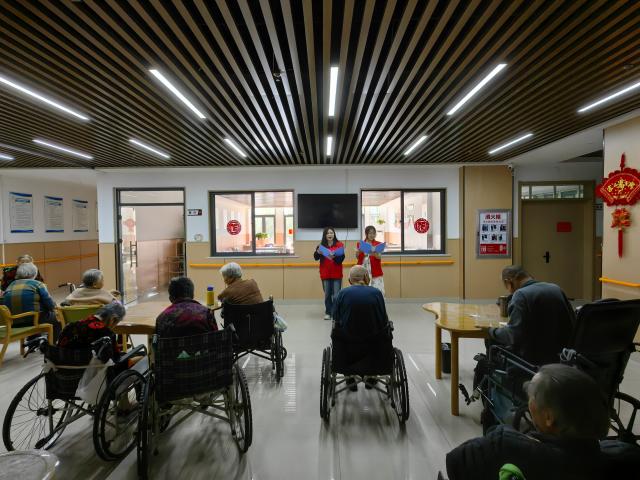 活动期间,志愿者为老人们献上精彩的文艺表演,铿锵有力的诗朗诵《春天的诗行》博得了在场老人的热烈掌声;精妙绝伦的魔术表演《白纸消失术》让老人们眼前一亮;合唱歌曲《最炫民族风》以欢快的节奏和动听的旋律将活动氛围推向高潮。表演结束后,志愿者陪老人们聊天、写字、画画、下棋,现场气氛轻松和谐、其乐融融。