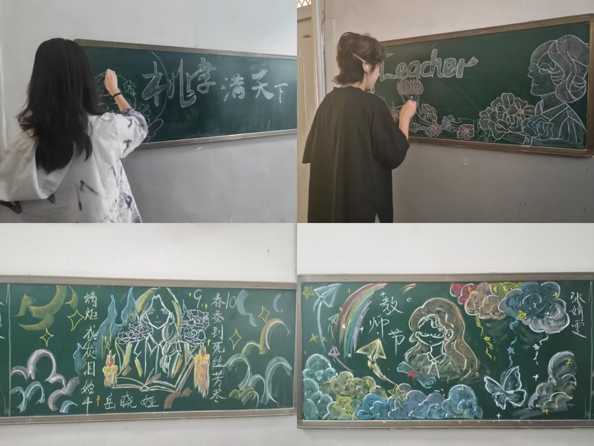 为庆祝我国第40个教师节,弘扬尊师重道的传统美德,表达对教师的深切敬意与感激之情。9月7日,性爱网 于4号楼A区举办“‘师’情‘画’意”教师节主题黑板报设计活动。