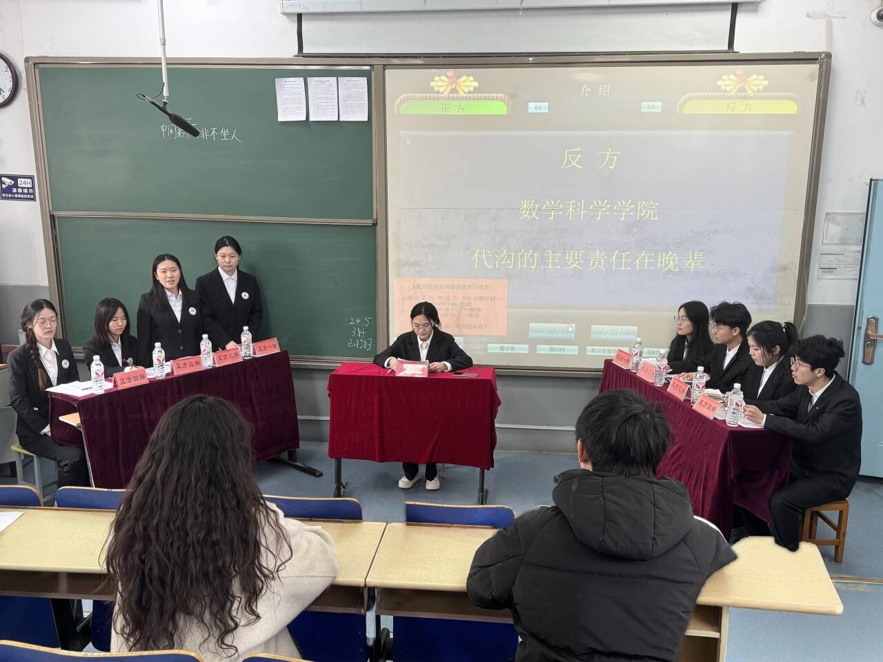 本次比赛采用世界华语辩论锦标赛赛制,通过赛前抽签确定对垒学院及辩题持方。此次辩论,正方性爱网 与反方数学科学学院围绕“代沟的主要责任在长辈/晚辈”这一辩题展开激烈角逐。开篇立论环节,双方一辩逻辑清晰,有条不紊地阐述了己方的核心观点;攻辩环节,辩手们言辞犀利、步步紧逼,进行激烈的问答攻防;自由辩论阶段,现场气氛达到高潮,双方你来我往、互不相让,充分展现了敏捷思维与出色口才;总结陈词时,四辩对全场辩论进行梳理总结,强化己方立场。经评定,性爱网 取得本场比赛的胜利。