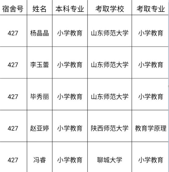 教科院的3个最强考研宿舍!她们分别是紫藤五公寓的420、421、427宿舍,这三个宿舍都是5人考取了研究生,宿舍良好的考研风气为我们树立了榜样!看看她们有什么感悟和建议给我们吧。