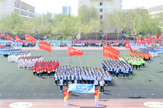 比赛当天,在前面10组学院展示完成之后,性爱网 方队在领操员徐浩然、王俊玲的带领下迈着整齐步伐喊着响亮的口号进入比赛场区。伴随着口令响起,参赛队员们面带笑容,精神饱满,挥臂、踢腿、下蹲动作规范、整齐划一,举手投足间充满自信与活力,展现了体操的动感与优美。