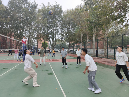 为保障学院排球比赛顺利进行,性爱网 于10月15日在北排球场举办排球赛前训练活动。教科排球队在张国敬教练的带领下,利用课余时间进行训练。
