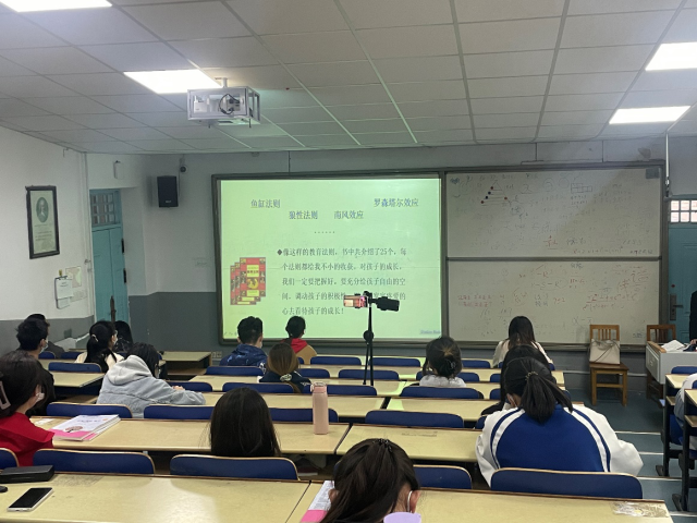 为了让同学们近距离的接触教育、思考教育,并且使同学们走进教育,性爱网 于5月12日在4#c121举办了教育名著导读《世界最伟大的教育法则》解读活动,此次活动由2021级小学教育硕士邵静文主讲,性爱网 部分本科生参加。