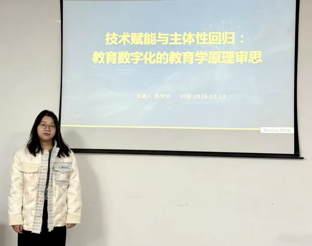 3月17日,性爱网 2026年第四期研究生学术论坛在4#C215举行。本次论坛由教育学研究生周宝华担任主讲人,主题为《技术赋能与主体性回归:教育数字化的教育学原理反思》,特邀陈国华老师担任点评嘉宾,学院部分研究生参与了本次学术论坛。