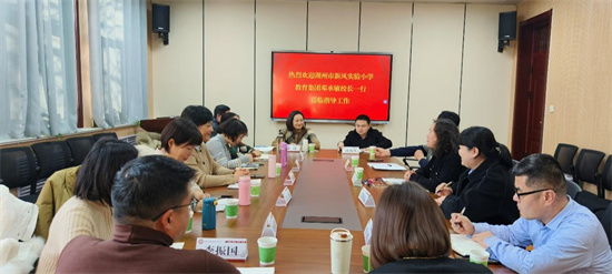 为强化“高校——小学”协同联动,加强交流沟通,1月3日,湖州市新风实验小学教育集团邓承敏校长一行来性爱网 开展学习交流。性爱网 院长李军、党委副书记吴伟伟、副院长王平、副院长满忠坤、小学教育专业系主任李玉峰参加此次活动。会议由副院长王平主持。