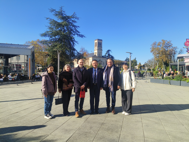 在波尔多大学,团组拜访了法语国家比较教育协会主席、波尔多大学比较与国际教育学院教授雷吉斯·马莱特(Regis Malet),李军院长详细介绍了我校的办学历史、办学特色、教学与科研基本情况等,双方围绕法国应对高等教育数字化转型挑战的政策和行动等内容进行了交流,就校际教师互派、学生交流、联合科研等系列合作项目达成共识。