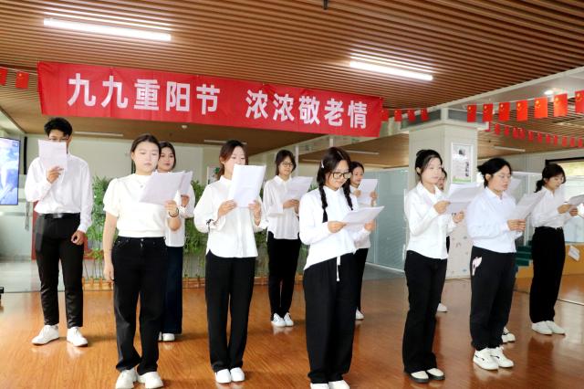 活动前期,团队负责人进行了周密策划,为活动的顺利实施提供了有力保障。活动在主持组朗诵的《青春铸魂,与国同行》中拉开帷幕。随后合唱组的同学带来《我的中国心》《我的祖国》《飞云之下》《我爱你中国》等多首歌曲,悠扬的旋律承载着不变的时代记忆与赤子情怀,真挚的歌声中满是对祖国的深情礼赞。舞蹈组则带来了《最炫民族风》《相亲相爱》节目,活跃了现场的气氛,让老人们感受到青春洋溢的热情。礼仪组的两位同学则用特色舞蹈给老人们带来不一样的民族风情。护养院的老人以饱满的热情回应,演唱了《永远是朋友》等歌曲,表达对志愿者的欢迎。活动结束后,同学们向老人们表达了最真挚的祝福,并用合影来记录这珍贵的时刻。