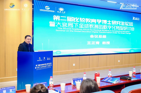 12月17日上午,由中国教育学会比较教育分会主办、西南大学教育学部承办的第二届比较教育学博士研究生论坛暨“大变局下全球教育的数字化转型”研讨会闭幕会在西南大学田家炳教育书院召开。中国教育学会比较教育分会秘书长、北京师范大学滕珺教授主持了论坛闭幕会。