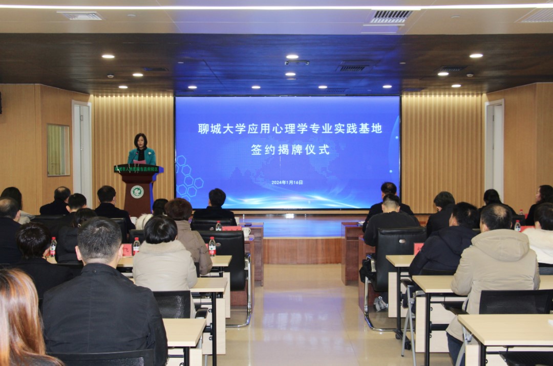 聊城市人民医院党委书记姜祥坤在讲话中表示应用心理学专业教育实践基地的建设不仅对学校学生培养工作具有重要意义,对于维护和增进辖区内群众身心健康、提升公众幸福感也具有积极影响。他相信,通过双方的共同努力,一定能实现合作互动、互利共赢,为国家经济社会发展做出更大贡献。
