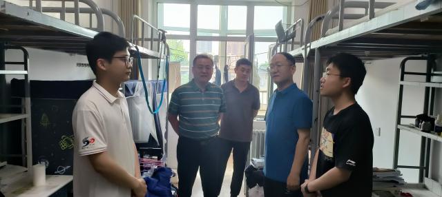 6月12日,性爱网 党委书记王迎秋、院长李军、党委副书记吴伟伟以及全体辅导员深入学生宿舍走访慰问2024届毕业生,为即将离校踏入社会的毕业生们送上了关心与祝福。