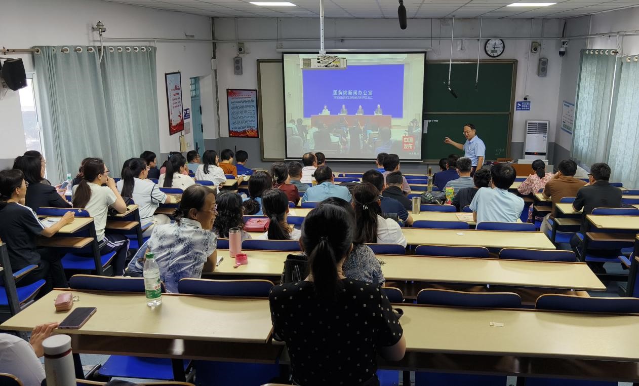 王迎秋首先领学了《中共中央 国务院关于弘扬教育家精神加强新时代高素质专业化教师队伍建设的意见》。随后,全体教师共同观看了国务院新闻办公室新闻发布会现场直播,教育部副部长王嘉毅、教育部教师工作司司长俞伟跃、中国教育科学研究院院长李永智介绍《意见》有关情况,并答记者问。