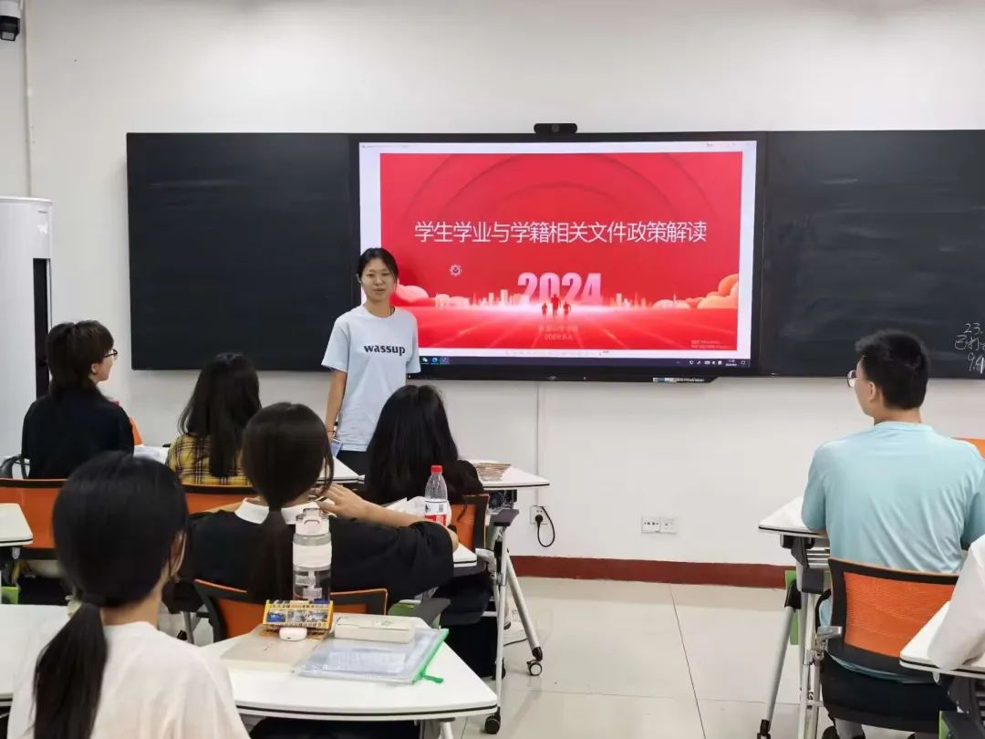 辅导员武笑琦强调了遵守校规校纪的重要性,学生组织骨干为同学们详细解读了学生行为准则、学术诚信、考试纪律等相关规定,新生们对如何成为一名合格的大学生有了更深刻的认识。