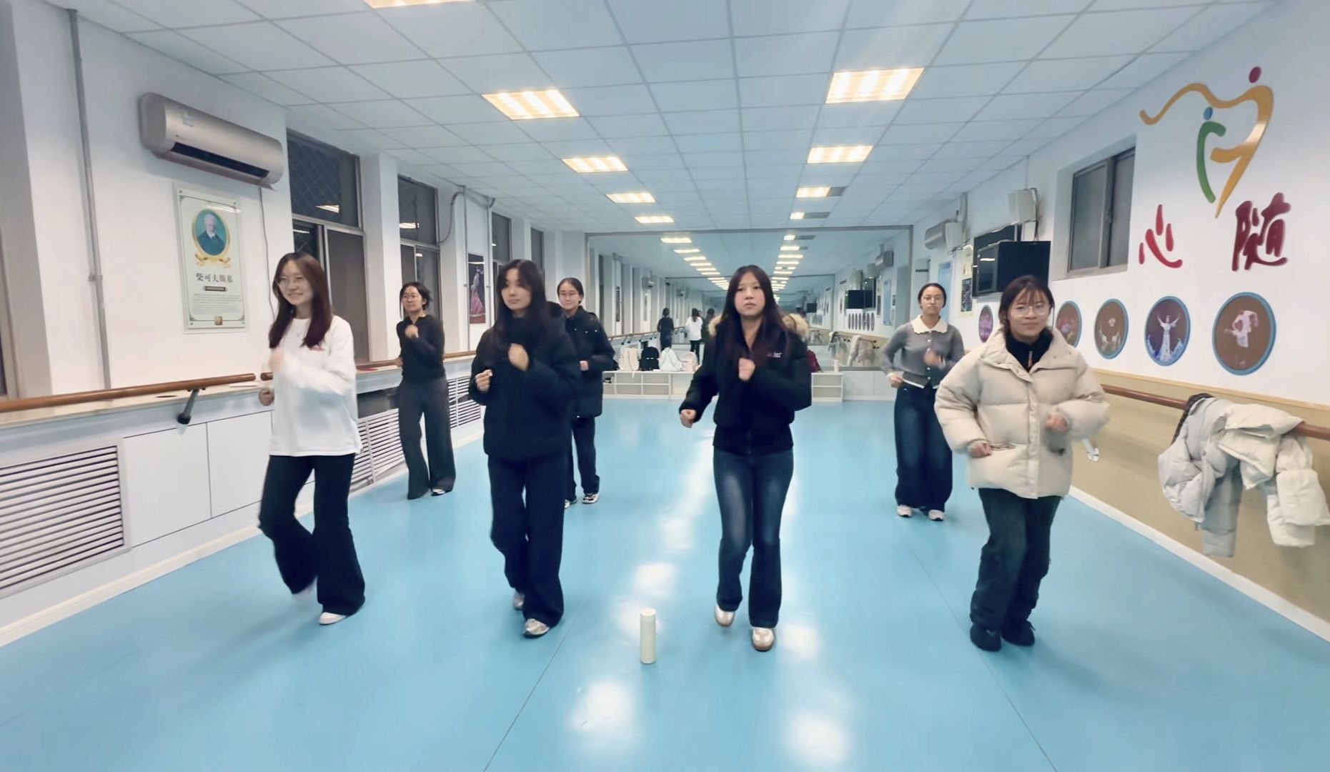 本次活动周期为 30 天,共分 5 期推进。以 3 次打卡为 1 期,固定每周五、周六、周日开展打卡,让同学们能更合理地安排时间,参与其中。在内容设计上,学院规划了学习路径:基础学习阶段对应第 1-2 期,着重练习基础动作,通过慢动作示范与分解教学,帮助同学们建立清晰的动作认知;能力提升阶段为第 3 期 ,在基础动作之上融入简单跳跃、转身等元素,并鼓励同学们分享视频、互相点评,强化动作记忆;巩固强化阶段为第 4-5期 ,通过观察动作细节,及时纠正不规范姿势以及发力技巧,助力大家熟练掌握整套动作。