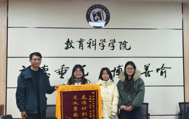史倩倩、夏慧敏、尤雪三位同学的善举,生动体现了当代青年的责任担当,也是学院“立德树人”育人成效的具体彰显,深刻诠释了“立德垂范,博学善喻”院训精神的实践力量。