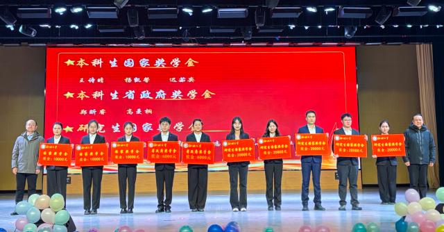 大会在庄严的国歌声中拉开帷幕。学院党委书记王迎秋老师致辞,他总结了过去一年学院学风建设育人成果,向辛勤付出的老师致以诚挚问候与感谢,向全体获奖同学表示热烈祝贺,并对同学们提出三点殷切希望:一是希望同学们做眼里有光的“追光者”,二是希望同学们做脚下有泥的“实干者”,三是希望同学们做心中有爱的“担当者”,以专业与温度温暖社会。他鼓励同学们带着荣誉与期许,以卓越素养为笔、以教育报国为墨,在2026年共同书写更加精彩的篇章。随后,学院党委副书记吴伟伟老师宣读获奖学生名单,学院领导分别为获得国家奖学金、省政府奖学金、各类励志奖学金、校级英才奖学金、校级单项奖学金、校级优秀学生、校级优秀研究生、校级优秀学生干部、校级优秀研究生干部的同学颁奖。