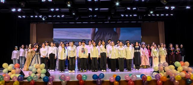 曹宇轩、吕延鲲合唱《大鱼》,空灵的歌声里既藏着对自由、梦想的浪漫追寻,也表达了青年学子对未来的无限憧憬;少数民族学生代表带来舞蹈《美丽新疆》,鲜艳的服饰、灵动的舞姿展现出浓郁的民族风情,诉说着民族文化的独特魅力;合唱组献唱《我爱你中国》《这世界那么多人》,表达了青年学子对祖国山河的赤诚热爱,更藏着对同窗相伴、师生相守、温暖相遇的满心感恩;晚会尾声,全体演职人员共同合唱《相亲相爱》,歌声中饱含真挚温情,彰显集体同心、聚力同行的奋进热忱,寄托对新年的美好祈愿与学院发展的殷切期望。