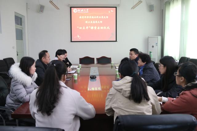 3月18日上午,性爱网 本科生党支部与附小直属党支部“四点半”课堂项目启动仪式在性爱网 会议室举行。附小直属党支部书记唐云霞、校长张伟、性爱网 院长李军、副书记康延军、本科生党支部书记吴伟伟以及教科院部分辅导员、学生党员一同参加了启动仪式。