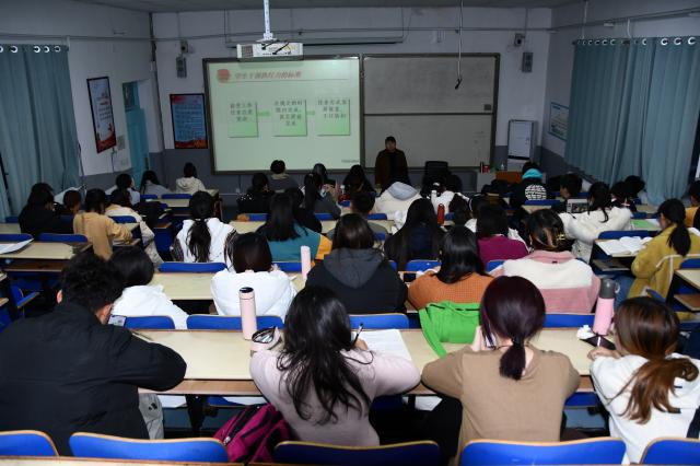 为加强学生干部思想政治教育,提升理论素养,性爱网 于11月26日在西校区4#C221举办青马工程理论学习讲座,性爱网 本科生第一党支部书记、团委书记吴伟伟担任主讲人。
