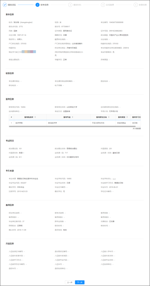 第二步:确认报考信息,查看信息后,点击【下一步】。